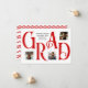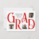 Cette carte de faire-part de graduation présente un design frappant avec le mot "GRAD" en grandes lettres serif classiques, créant un impact visuel audacieux. Chaque lettre est soigneusement placée pour présenter trois photos personnelles, ce qui vous permet de mettre en valeur des moments chéris. La typographie élégante contraste magnifiquement avec l’arrière - plan blanc immaculé, tandis que le texte personnalisé ajoute une touche raffinée pour célébrer le jalon du diplômé. Le dos comprend un motif zigzag coloré pour correspondre à l'avant. Parfait pour partager en famille et entre amis pour marquer cette fière réussite ! Disponible dans les couleurs standard de l'école de noir, rouge, orange, vert, bleu, violet, marron, et brûlé orange ou modifier pour correspondre aux couleurs de l'école.