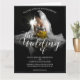 faire-part mariage avec photo d'une mariée rêveuse assise avec un bouquet jaune de fleurs dans le pénumbra - style classique. Les noms, le texte, l'emplacement et la date peuvent être customisés dans le modèle.