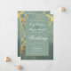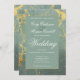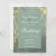 Moderne et sophistiqué, faire-part de mariage avec un fond sarcelle et marbrures dorées. Vous pouvez changer les polices sur ce faire-part de mariage si vous le souhaitez.