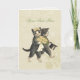 Fond floral ivoire et thème de chats de mariage vintage doux avec intérieur assorti. Ce design est prêt à être personnalisé pour répondre à vos besoins. Il peut être utilisé comme cartes de remerciement, invitations à la douche de mariée, faire-part de Save the Date et plus encore. Vous décidez. Douce chatte mariée tenant un bouquet de mariage de roses blanches et chat marié se pavanant à côté d'elle avec son haut-de-forme noir.