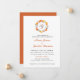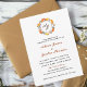 Invitation de mariage élégante avec feuillage d'automne peinte à la main à l'aquarelle et monogramme en feuilles de couleur orange, or et rouille.