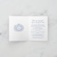 Carte pliée d'annonce de streaming vidéo en direct de mariage avec monogramme de feuille dessinée à la main bleue classique. Cette carte simple mais élégante fait partie de l'ensemble de mariage assorti avec monogramme de feuille dessinée à la main blanc et bleu. Idéal pour être utilisé comme carte d'information de mariage pour informer vos invités d'un événement de streaming de mariage en raison de circonstances imprévues. Dessin de feuille simple entourant le design de vos propres initiales de monogramme. Dans des nuances de bleu classique foncé et de blanc. D'autres options de couleur sont disponibles. Design original de Sarah Trett pour www.mylittleedenweddings.com