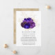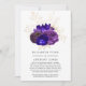 Invitation de mariage florale bleu royal, violet et violette avec des accents d'or personnalisables selon les spécificités de votre événement. En ces temps incertains, il peut arriver que vous deviez organiser un mariage plus petit que prévu initialement. Cette carte d'annonce enlèvera la gêne et vous enlèvera un poids de l'esprit ! Vous pouvez en outre offrir la possibilité de se joindre à vous pour une cérémonie virtuelle.