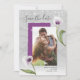 Customisez votre propre élégance, enregistrez les invitations de dates sur un modèle floral calla lily qui est simple à utiliser. Les lys calles blancs et violets font-ils partie de vos plans de mariage, de douche nuptiale ou d'un autre fiançailles spécial? Ce design botanique rustique illustré par Raphaela Wilson représente 2 fleurs de lys d'aquarelle sur un arrière - plan gris argenté clair. Les lampes à cordes romantiques accrochées ajoutent de l'éclairage et de l'éclat, et il y a beaucoup de place à l'arrière pour ajouter plus de détails sur l'événement si vous avez besoin d'une pièce supplémentaire. La typographie combine un élégant script de calligraphie avec des polices modernes - vous pouvez les garder ou sélectionner quelque chose de différent. Ajoutez votre propre photo pour que ces modèles d'images enregistrent les invitations de date vraiment personnalisée, et modifient les couleurs de l'arrière - plan, accent papier déchiré, et svg graphique floral ligne art. Vous préférez une variété différente couleur de lys d'appel personnalisé? Choisissez parmi le violet solide, l'orange brûlé et le blanc pur d'ivoire. Customisez simplement la conception plus loin pour voir ces options. Vous pouvez également transférer ce design unique calla lily sur Magnet Réservez la date ou enregistrer les cartes postales de date si vous avez un autre type de papeterie. Que ce soit le printemps, l'été, l'automne/l'automne ou l'hiver, annoncez votre fiançailles avec ces mariages floraux, sauf les invitations de date convenant à n'importe quel moment de l'année. Catégorie : mariages calla blanc et violet; fiançailles moderne enregistrer les invitations de date; et mariage calla lily enregistrer les invitations de date. Calla lily couleurs mariages : gris argenté clair, violet violet violet, prune, vert, noir et blanc.