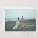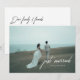 Annonce de mariage moderne avec écriture 'Jeunes mariés'. Annoncez votre mariage en toute intimité à votre famille et à vos amis avec cette élégante carte de mariage personnalisable. Conçue avec de belles lettres manuscrites sur le devant et le dos, personnalisez avec vos noms, une photo de mariage préférée et un message à tous vos proches au dos.