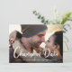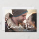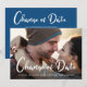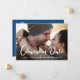 Même si les circonstances vous ont obligé à reporter la date de votre mariage, montrez à vos invités que votre amour continue avec votre photo de fiançailles préférée sur cette carte d'annonce de changement de date de mariage. Sur le devant, « Changement de date » est écrit en grande écriture blanche contemporaine en bas de votre photo, et en dessous, vous pouvez personnaliser vos noms et l'annonce de report. Au verso, vous pouvez personnaliser votre message de manière plus détaillée et ajouter la nouvelle date et le lieu de votre mariage, le tout dans une typographie blanche simple sur un fond bleu classique.