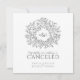 Mariage monogramme en feuille gris foncé annulé faire-part carte. Cette carte simple mais élégante fait partie de l'ensemble de mariage monogramme en feuille gris foncé assorti. Idéal pour utiliser comme carte d'information de mariage pour informer vos invités d'une annulation d'événement ou de mariage, ou de reporter en raison d'une maladie ou de circonstances imprévues. Un design de feuille simple encerclant votre propre design d'initiales monographiques. En monotone classique gris foncé et blanc. D'autres options de couleur sont disponibles. Design original par Sarah Trett pour www.mylittleedenweddings.com