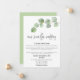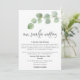 Pour les moments où une cérémonie de mariage plus petite et socialement distante est nécessaire et que vous souhaitez faire savoir à vos invités que vous réduisez la taille et les inviter à la diffusion en direct, ce design contemporain présente une élégante branche de feuilles d'eucalyptus en haut et un script élégant et moderne avec "Notre mariage plus petit" en dessous. Le reste du texte, vous pouvez facilement le personnaliser avec vos informations. Vous pouvez également changer la couleur de fond verte coordonnée à l'arrière en une autre couleur si vous le souhaitez via l'option Personnaliser davantage.