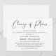 Si des circonstances telles que les directives de distanciation sociale vous obligent à réduire la participation à votre mariage, vous pouvez informer votre famille et vos amis sur votre liste de personnes invitées élargie originale avec cette annonce de mariage plus petite, moderne et minimaliste, mais élégante, en noir et blanc. "Changement de plans" est écrit dans un style script et vous pouvez facilement personnaliser le message de réduction de mariage avec plus de détails et ajouter toute information de diffusion en direct de la cérémonie, de célébrations futures et de site web de mariage.