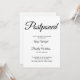 Voici une carte simple pour avertir vos invités s'il est nécessaire de changer votre date de mariage. Utilisez les champs modèles pour ajouter vos détails personnels et faire de ce design élégant et minimaliste votre propre. L'arrière - plan blanc peut être changé à n'importe quelle couleur que vous préférez. Toutes les polices et couleurs sont également modifiables. Veuillez communiquer avec toute demande spéciale ou customiser de l'aide. D'autres pièces avec un autre libellé sont disponibles dans la collection.