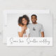 Pour les moments où une cérémonie de mariage socialement distante est nécessaire et où il est nécessaire de désinviter certains invités et de les inviter à la diffusion en direct, ce design moderne et contemporain a votre photo sur le devant, avec les mots même amour. Mariage plus petit dans un élégant script de style manuscrit. Au dos, personnalisez facilement avec vos détails.
