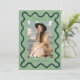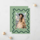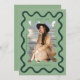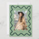 Carte de faire-part de graduation unique et originale à envoyer à la famille et aux amis. Il y a une ligne ondulée serrée dessinée à la main autour de votre photo avec le nom du diplômé ci-dessous. Arrière - plan vert.
