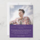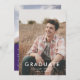 Ce message chic violet et la carte de faire-part de diplôme de photographie est la parfaite simple faire-part de lycée ou de collège. Le design simple présente une typographie classique violet prune foncée et blanche avec une atmosphère boho rustique. Personnalisable dans n'importe quelle couleur. Personnalisez l'avant de la carte avec une photo, le nom de vos diplômés et l'année. Ajoutez une photo supplémentaire et un message de faire-part plus long au dos de la carte.