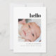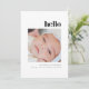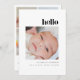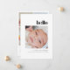 Minimalistic Bold "Hello" 5-Photo Baby Birth Announcement Card. Personalize with baby's name, time/date of birth, weight, and five photos of your choice. Customize further with a short message on the back for family and friends.