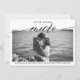 Carte de mise à jour d'annonce de mariage simple et moderne. La conception comporte un script de calligraphie ''nous passons au micro'' et des détails en lettres majuscules tendance.