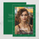 Elegant green graduation photo announcement with a mathematics background and a message that you can personalize too at the back of the card. Illustrated and designed by Patricia Alvarez.