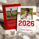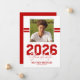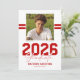 Announce a major milestone with this modern masculine graduation announcement card. Featuring a sleek white background, the front showcases a square photo of the graduate accented by two sporty red stripes running through the background for a bold, athletic feel. A strong “2026 Graduate” title is paired with the graduate’s name and the school, college, or university they attended.