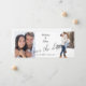 Cette carte moderne Save the Date Mariage a des modèles à chaque extrémité pour vos photos. Au centre se trouve le script gris foncé moderne qui dit "Enregistrer la Date", et votre texte personnalisé en gris clair est dans deux champs placés au-dessus et au-dessous. Le dos de la carte peut être entièrement customisé par vous ; ajoutez même plus de photos si vous voulez!