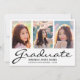 Envoyez à votre famille et à vos amis un faire-part de remise de diplômes photo personnalisé unique et une carte d'invitation à la fête pour les wow. Ce design modèle comprend trois photos que vous pouvez modifier à votre façon. Vous trouverez ci-dessous le mot "Graduate" en typographie manuscrite noire, ainsi que votre nom et vos détails pour personnaliser. Le dos de la carte a un invitation avec plus de détails sur votre jour de remise des diplômes et votre fête. Conçu par l'artiste ©Susan Coffey.