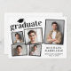 Faire-part moderne de graduation avec un collage photo de 5 images éparpillées dans des cadres, "diplômé" en typographie courageuse et tendance et le nom de la diplômée, l'école et l'année de classe en typographie simple.