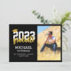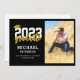 Carte de Faire-part moderne Black Gold Script Photo Graduation Card. Célébrez le diplômé avec cette carte postale moderne et minimaliste. Tous les textes de ce modèle sont faciles à mettre à jour pour vous avec vos propres détails et photos.