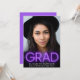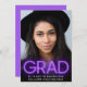 Faire-part de graduation amusante et tendance avec "GRAD" en néon violet brillant sur la photo de votre diplômé. Personnalisez avec son nom, son année de classe et son école.