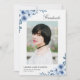 fêtez votre graduation avec ce design floral avec une belle photo et des fleurs bleu aquarelle.