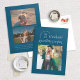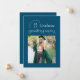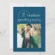 Ce faire-part moderne de graduation comporte une photographie carré unique sur un arrière - plan bleu foncé et une typographie tendance avec le nom de l'école et l'année de graduation donnant l'impression d'un timbre et le nom des diplômés mis en évidence de manière très moderne et tendance, reflétant à l'envers des autres informations de graduation. Le dos de la faire-part de remise de diplômes comprend deux photographies, parfaites pour inclure une photo d'enfance, et un endroit pour un message plus long, idéal pour mettre en évidence les réalisations du diplômé ou les plans futurs.