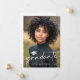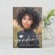 Carte faire-part photo avec votre photo avec le texte "diplômé" et une casquette de graduation comme une couverture blanche. Ajoutez une photo supplémentaire et un message personnalisé au dos.