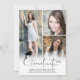 Annoncez la réussite de votre baccalauréat ou de votre diplômé de l'université avec cette typographie moderne et simple à la main faire-part de design de titre GRADUATE avec 4 photos (3 sur le devant et 1 sur le dos) avec capuchon de graduation noir ou accent mortier. Le verso offre un champ de texte pour des informations sur les réalisations, les activités et les plans futurs de votre diplômé. ASSISTANCE : Pour obtenir de l'aide sur la modification/personnalisation de la conception, le transfert de la conception à un autre produit ou si vous souhaitez coordonner des éléments, contactez le concepteur AVANT DE COMMANDER via l'onglet MESSAGE Conversation Zazzle ou envoyez un courriel à makeitaboutyoustore@gmail.com.