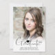 Annoncez la réussite de votre baccalauréat ou d'un diplôme d'études supérieures avec cette carte de faire-part moderne avec une simple typographie à la main design de titre DIPLÔMÉ par une casquette de graduation dans votre choix de couleurs et 2 photos (1 sur le devant et 1 sur le dos). Le verso offre un champ de texte pour des informations sur les réalisations, les activités et les plans futurs de votre diplômé si vous le souhaitez. MODIFICATIONS : Modifiez les couleurs de texte ou de graphique dans MODIFIER. ASSISTANCE : Pour obtenir de l'aide sur la modification/personnalisation de la conception, le transfert de la conception à un autre produit ou si vous souhaitez coordonner des éléments, contactez le concepteur AVANT DE COMMANDER via l'onglet MESSAGE Conversation Zazzle ou envoyez un courriel à makeitaboutyoustore@gmail.com.