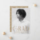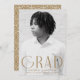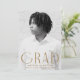 Annoncez la réussite de votre diplômé en style avec cette élégante et moderne faire-part de diplôme. Avec la photo verticale du diplômé, "Grad" est présenté en laiton antique, en lettrage art déco moderne, créant un look sophistiqué et intemporel. Personnalisez l'avant de ce faire-part photo unique avec le nom du diplômé, l'école et l'année de diplôme pour une touche personnalisée. L'envers présente un design en laiton raffiné et en tourbillon géométrique blanc, offrant un contraste chic. Idéal pour les diplômés du secondaire et du collégial, ce faire-part personnalisable est le moyen parfait de célébrer et de partager leur moment spécial.