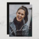 Ce Faire-part moderne de Graduation à deux Photo Script simple comprend une photo pleine dimension sur le devant avec une superposition de texte blanc et une photo arrière avec des détails optionnels.