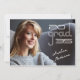 Style high tech moderne 2 Cartes de faire-part de graduation photo, avec éléments design d'un texte clair transparent, moderne et sophistiqué lisant "Grad" et l'année de graduation avec une typographie minimaliste de style manuscrit. La photo du diplômé à l'avant de la carte met en évidence toute la surface avec une deuxième photo à l'arrière. Le dos de la carte offre également des espaces de texte personnalisés pour des informations sur votre graduation et votre futur voyage. Idéal pour les personnes âgées du secondaire, du collège et de l'université.