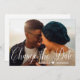 Lorsque votre date de mariage est reportée, cette photo élégante Modifier la carte de date informera vos amis et familles dans le style. Ce modèle design moderne présente votre photo romantique avec un texte trop dans un script blanc moderne qui dit "Changer la Date" et votre nom ci-dessous avec un coeur entre pour vous de personnaliser. Le dos de la carte postale contient votre faire-part de report avec un message et une signature pour vous permettre de customiser. Conçu par l'artiste ©Susan Coffey.