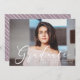 Célébrez l'exploit de votre diplômé avec nos annonces de graduation de Script de Momentous, avec un script de calligraphie moderne élégant superposant leur photo senior préférée. Personnalisez le faire-part avec le nom du diplômé, le nom de l'école et l'année d'obtention du diplôme pour une touche spéciale. Le dos de la carte présente un arrière - plan à rayures en diagonale dessiné à la main dans le violet antique, ajoutant un design unique et élégant. Parfaites pour les diplômés du secondaire et du collège, ces annonces branchées sont une belle façon de partager les nouvelles excitantes avec des amis et la famille.