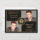 Un carte photo élégant pour le diplômé dispose d'un endroit pour deux de vos photos encadrées en noir et or avec un badge ornemental au centre pour un monogramme. Il vous suffit de télécharger vos propres images et de customiser le texte pour un faire-part spécial. Le dossier est vide pour obtenir des renseignements supplémentaires ou des renseignements sur les personnes qui ont obtenu leur diplôme.