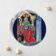 Coloré, vibrant, peinture contemporaine en or, bleu, rouge, vert, couleurs marron. Un mystérieux sorcier hypnotique avec d'élégants costumes de velours rouge tenant une sphère magique assise sur un trône gothique avec des gargouilles et une chouette. Ambient est surréaliste, fantastique, alchimique où vous voyez un bouchon boire d'une tasse, un moine tempéré volant sur une grenouille, bulles transparentes, paysages d'imaginaire avec feu d'enfer, ciel bleu cosmique avec étoiles, montagnes du ciel, arbres.Egg Tempera sur panneau en bois avec feuille d'or. 1989, Miniature Fabriquée avec des techniques picturales de 1300 par Alessandro Lumini (c) C'est aussi un beau design d'imaginaire pour Noël, Fête, Anniversaire, Jour de la Saint-Sylvestre, Mardi Gras et salutations carnavales.