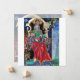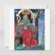 Coloré, vibrant, peinture contemporaine en or, bleu, rouge, vert, couleurs marron. Un mystérieux sorcier hypnotique avec d'élégants costumes de velours rouge tenant une sphère magique assise sur un trône gothique avec des gargouilles et une chouette. Ambient est surréaliste, fantastique, alchimique où vous voyez un bouchon boire d'une tasse, un moine tempéré volant sur une grenouille, bulles transparentes, paysages d'imaginaire avec feu d'enfer, ciel bleu cosmique avec étoiles, montagnes du ciel, arbres.Egg Tempera sur panneau en bois avec feuille d'or. 1989, Miniature Fabriquée avec des techniques picturales de 1300 par Alessandro Lumini (c) C'est aussi un beau design d'imaginaire pour Noël, Fête, Anniversaire, Jour de la Saint-Sylvestre, Mardi Gras et salutations carnavales.