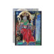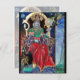 Coloré, vibrant, peinture contemporaine en or, bleu, rouge, vert, couleurs marron. Un mystérieux sorcier hypnotique avec d'élégants costumes de velours rouge tenant une sphère magique assise sur un trône gothique avec des gargouilles et une chouette. Ambient est surréaliste, fantastique, alchimique où vous voyez un bouchon boire d'une tasse, un moine tempéré volant sur une grenouille, bulles transparentes, paysages d'imaginaire avec feu d'enfer, ciel bleu cosmique avec étoiles, montagnes du ciel, arbres.Egg Tempera sur panneau en bois avec feuille d'or. 1989, Miniature Fabriquée avec des techniques picturales de 1300 par Alessandro Lumini (c) C'est aussi un beau design d'imaginaire pour Noël, Fête, Anniversaire, Jour de la Saint-Sylvestre, Mardi Gras et salutations carnavales.