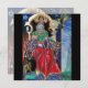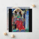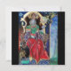 Coloré, vibrant, peinture contemporaine en or, bleu, rouge, vert, couleurs marron. Un mystérieux sorcier hypnotique avec d'élégants costumes de velours rouge tenant une sphère magique assise sur un trône gothique avec des gargouilles et une chouette. Ambient est surréaliste, fantastique, alchimique où vous voyez un bouchon boire d'une tasse, un moine tempéré volant sur une grenouille, bulles transparentes, paysages d'imaginaire avec feu d'enfer, ciel bleu cosmique avec étoiles, montagnes du ciel, arbres.Egg Tempera sur panneau en bois avec feuille d'or. 1989, Miniature Fabriquée avec des techniques picturales de 1300 par Alessandro Lumini (c) C'est aussi un beau design d'imaginaire pour Noël, Fête, Anniversaire, Jour de la Saint-Sylvestre, Mardi Gras et salutations carnavales.