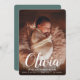 Laissez le nom du bébé prendre le centre de la scène avec ces annonces de naissance élégantes, avec une photo verticale avec le prénom du bébé, surmonté d'un script de calligraphie blanche en lettres. Personnalisez avec le milieu et le nom de famille et les statistiques de naissance du bébé en dessous, et ajoutez une photo supplémentaire à l'arrière, ainsi qu'un message personnel.