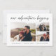 Une carte de faire-part fiançailles moderne et passionnante pour le couple aventurier, cette conception simple et épurée comprend trois photos horizontales ou orientées paysage dans une mise en page de collage grille, avec "notre aventure commence" ci-dessus en écriture manuscrite. Personnalisez avec vos faire-part, noms et détails supplémentaires le long du bas.