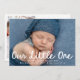 Fêtez votre arrivée la plus récente avec cette carte de faire-part de naissance photo moderne et douce "Our Little One". Le recto présente la photo horizontale de votre bébé avec "Notre Petit", affichée dans un script blanc manuscrit, associée au nom de votre bébé, à la date de naissance et aux statistiques ci-dessous. Le dos de la carte comprend une photo verticale et un message de remerciement personnalisable, vous permettant d'express la gratitude à vos proches tout en partageant un autre moment spécial. Parfait pour les garçons, les filles ou les annonces sans distinction de genre, ce design photo-avant fait un souvenir chaleureux pour les amis et la famille.