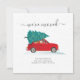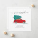 Nous avons déménagé Noël vacances Faire-part avec une voiture rouge et arbre de Noël avec script et typographie populaire sur arrière - plan blanc.