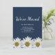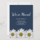 Carte de faire-part mobile bleu marine moderne, avec un design de marguerites blanches et de typographie personnalisable. Idéal pour faire connaître votre nouvelle adresse aux proches.
