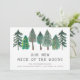 Faites connaître à vos amis et à votre famille votre nouvelle adresse avec ces annonces rustiques, avec une rangée de pins d'aquarelle au-dessus des mots "Notre nouveau cou des bois" dans la typographie d'impression à la main. Ajoutez votre nom et votre nouvelle adresse ci-dessous en police sans serif. L'arrière est une nuance coordonnée de vert massif.