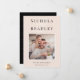 Partagez la nouvelle de vos fiançailles avec ces élégantes cartes d'annonce comportant une photo carrée avec vos noms en haut en lettrage classique, réunis par une esperluette ornée. Personnalisez avec deux lignes de texte personnalisé en bas pour plus de détails ou votre site web de mariage.