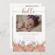 Sweet baby girl terracotta et dusky gris aquarelle pampas herbe et hydrangea bouquets floraux quatre photo collage à deux côtés "Hello" Faire-part de naissance. Ajoutez simplement les photos et les détails de votre bébé précieux pour compléter ce design. Conception composite par Holiday Hearts Designs (droits réservés).