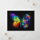 Arc en ciel, papillon monarque lumineux, artistiquement peint avec bouquet de roses irisés, lumineux, lumineux sur arrière - plan noir. Papillon arc-en-ciel.